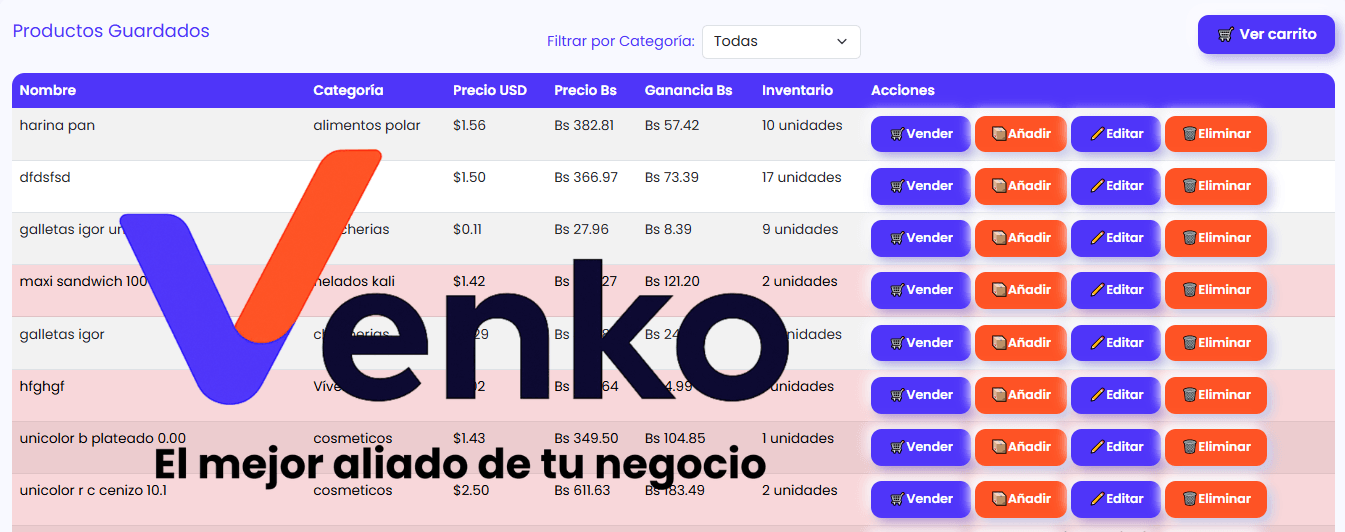 Con Venko tendrás un sistema simple que te muestra con claridad tus ganancias y tu inventario, para que cada venta realmente sume.